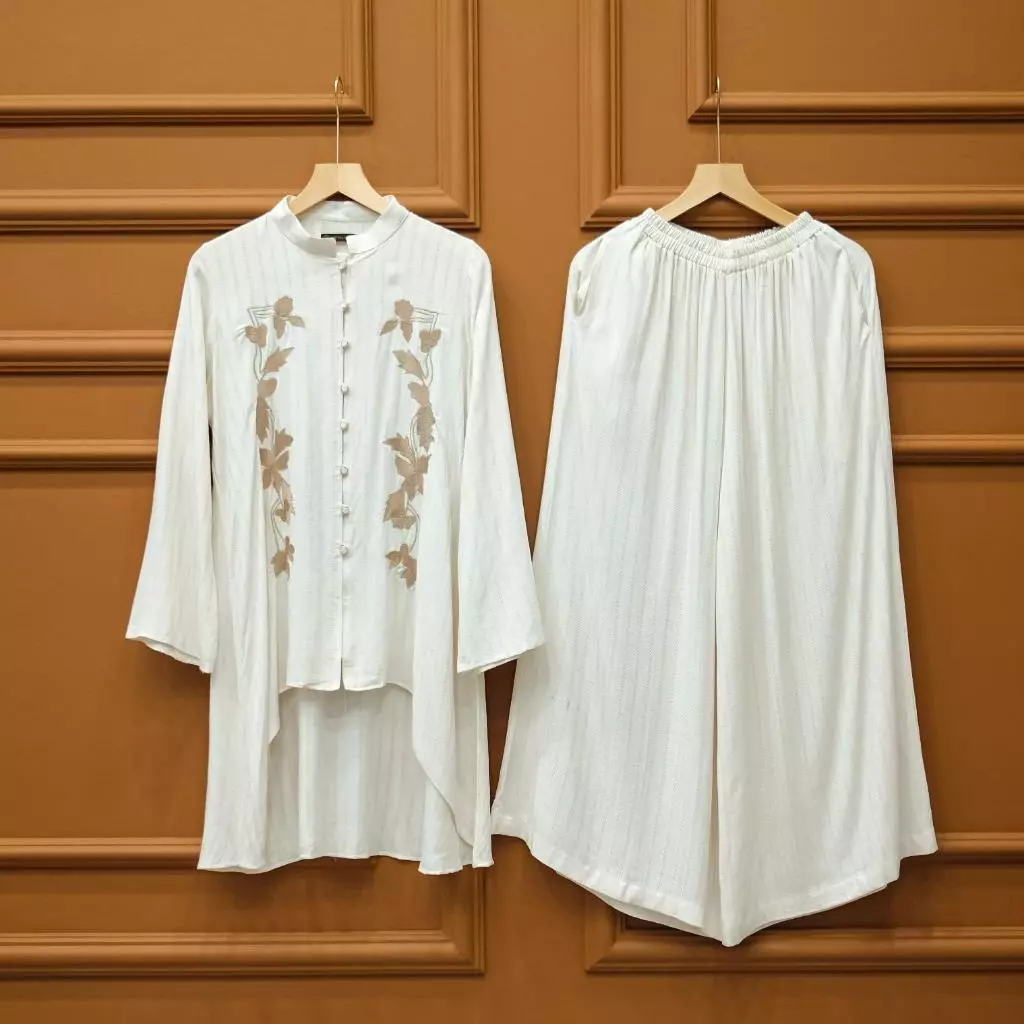 Super soft cotton linen set with embroidered accents.